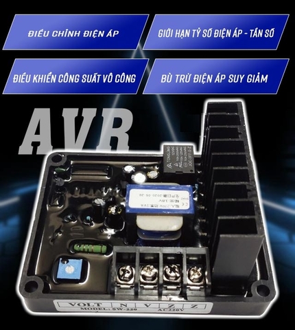 AVR là viết tắt của Automatic Voltage Regulator, hay còn gọi là bộ điều chỉnh điện áp tự động. Đây là một bộ phận quan trọng được tích hợp trong máy phát điện, có chức năng chính là điều chỉnh và ổn định điện áp đầu ra của máy phát.