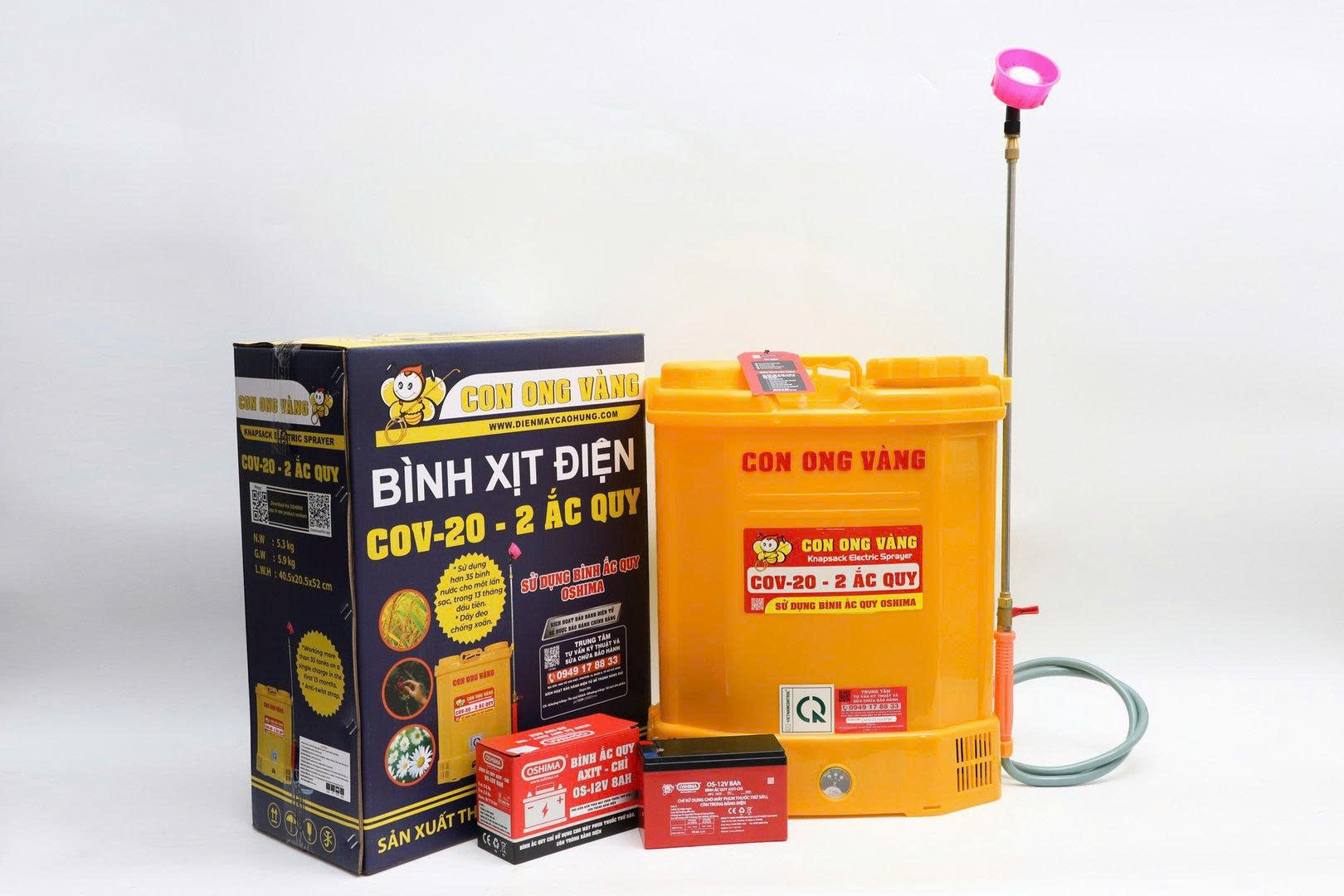 – Bình Phun Xịt Điện Con Ong Vàng COV-20 có khả năng phun xịt tối đa, áp lực mạnh , ắc quy 12V8AH sử dụng được liên tục trong 6 đến 8 giờ.