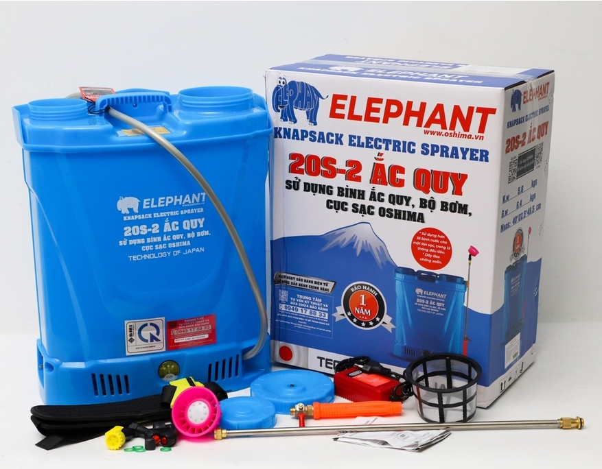 – Bình Xịt Điện Elephant 20L 20S dùng phun trừ sâu lúa, phun hoa màu, phun khử trùng, phun cây cảnh, hoặc dùng phun tưới cây.