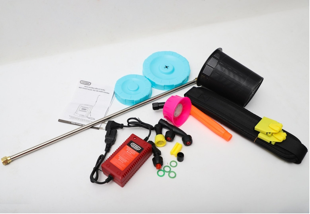 – Phụ tùng đi kèm : Lọc rác, Dây đeo, Cần phun, Tay cầm van bi, Bộ béc phun nhựa 4 béc, Cần 3 bec inox, Nắp bình nước, Bộ sạc, Dây nước 2 đầu răng.