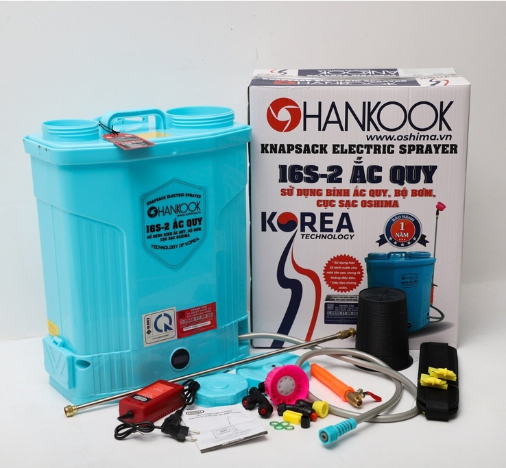 – Bình Xịt Điện Hankook 16L 16S dùng phun trừ sâu lúa, phun hoa màu, phun khử trùng, phun cây cảnh, hoặc dùng phun tưới cây.