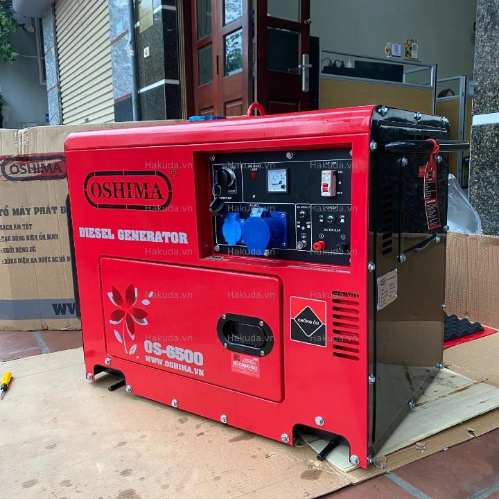 Máy Phát Điện Chạy Dầu 5kw Oshima OS-6500: động cơ và đầu phát được sản xuất và lắp ráp đồng bộ tại nhà máy của Oshima, đảm bảo chất lượng và giảm chi phí giá thành đến với khách hàng. Máy được thiết kế vỏ cách âm với lớp xốp và thép dày, giúp giảm thiểu tối đa tiếng ồn.