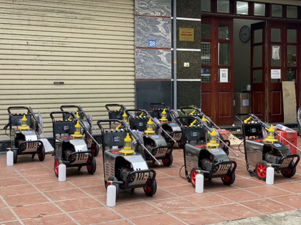 Phụ kiện đi kèm như: dây phun áp lực, súng phun, béc phun, cút kết nối nguồn nước, bình đựng hóa chất,...