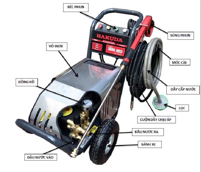 CẤU TẠO MÁY RỬA XE CAO ÁP VÀ NGUYÊN LÝ HOẠT ĐỘNG