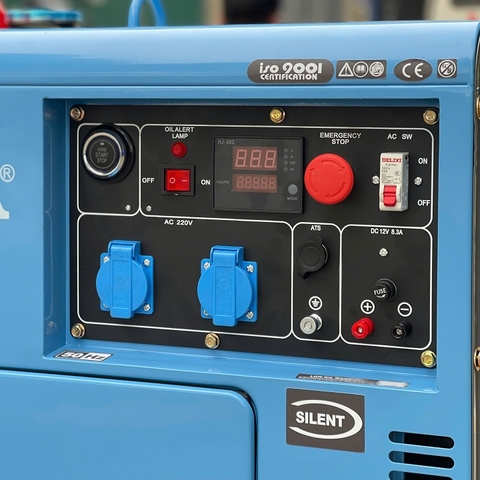 Máy phát điện chạy dầu Hakuda HKD5000P1 5KW cách âm cải tiến mặt táp-lô giúp máy: Dễ dùng hơn, an toàn hơn, thông minh hơn, phù hợp cả dân dụng lẫn công nghiệp nhỏ. Mặt táp lô phân chia trực quan, rõ ràng các nút ON/OFF, Start, Emergency Stop. Màn hình hiển thị thông số đầy đủ điện áp (V), tần số (Hz), giờ chạy (Hour meter), công suất thực tế đang chạy hiện tại giúp người dùng dễ dàng theo dõi tình trạng hoạt động theo thời gian thực, chủ động bảo trì, thay dầu đúng chu kỳ. Người dùng không cần kỹ thuật cao vẫn thao tác nhanh, chính xác. Giảm sai sót khi khởi động hoặc tắt máy. Có cổng ATS riêng biệt, máy có thể kết nối với bộ tự động giúp máy tự khởi động khi mất điện lưới. Đặc biệt Hakuda HKD5000P1 là dòng máy dầu 5KW duy nhất có nút dừng khẩn cấp bên ngoài táp lô, tăng an toàn tối đa khiquá tải, sự cố bất thường hay khi có tình huống khẩn cấp.