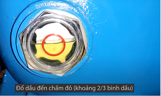 – Lượng dầu bôi trơn phải nằm trong khoảng cách giữa của mắt dầu hoặc nằm trong vạch tròn trong của mắt dầu.
