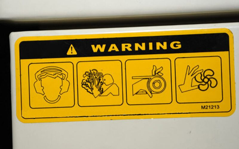 - Nguy hiểm về khí xả: Là cảnh báo quan trọng cần chú ý đối với các loại khí gây độc hay đến mọi người. Không được khởi động máy trong những không gian kín cũng như xả khí về phía có những người qua lại để thông gió.
