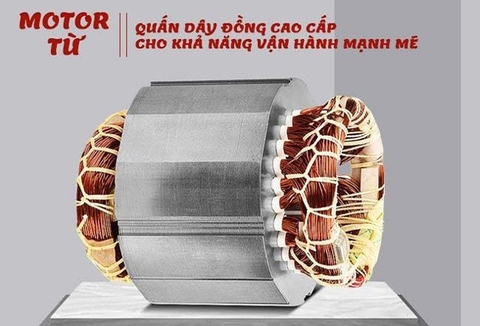 - Động cơ motor cảm ứng dây đồng từ giúp máy vận hành êm ái và bền bỉ, không lo xảy ra sự cố quá nhiệt khi dùng lâu, đem tới hiệu suất cao trong công việc