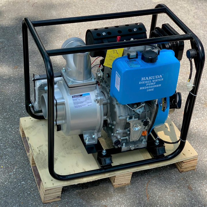 - Máy Bơm Nước Chạy Dầu Diesel Hakuda 6.3KW HKD6300MBN100E với công suất 6.3 kW và lưu lượng lớn (~80 m³/h), máy phù hợp cho các công việc cần bơm nước với dung lượng khá lớn (như tưới tiêu, tiêu thoát nước, công trình).