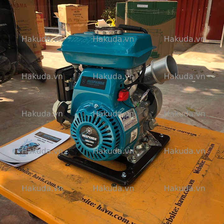 – Máy bơm nước chạy xăng Huspanda 2.5HP HBN 1502 dùng động cơ 152F. Máy thích hợp bơm tưới vườn rau, vườn cây ăn quả, bơm nước sinh hoạt, bơm tưới rửa chuồng trại.