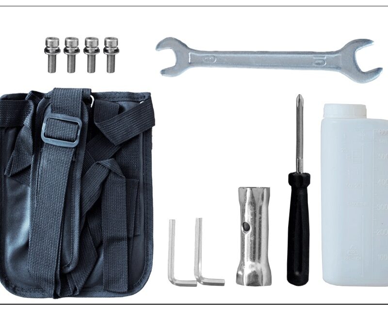 1 bình pha, 1 dây đeo và pas gắn dây đeo 1 cái, 1 lưỡi cắt cỏ (305mm x 90mm x 25,4mm x 1,6mm), 1 chắn cỏ, 1 tay cầm trái và 1 bịch phụ tùng (bulon, lục giác, lục giác 4 – 5, khóa mở bugi).