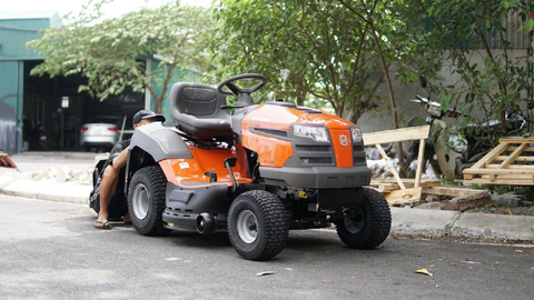+ Máy cắt cỏ ngồi: Loại máy này có chỗ ngồi cho người lái, người dùng chỉ cần ngồi và điều khiển máy di chuyển.