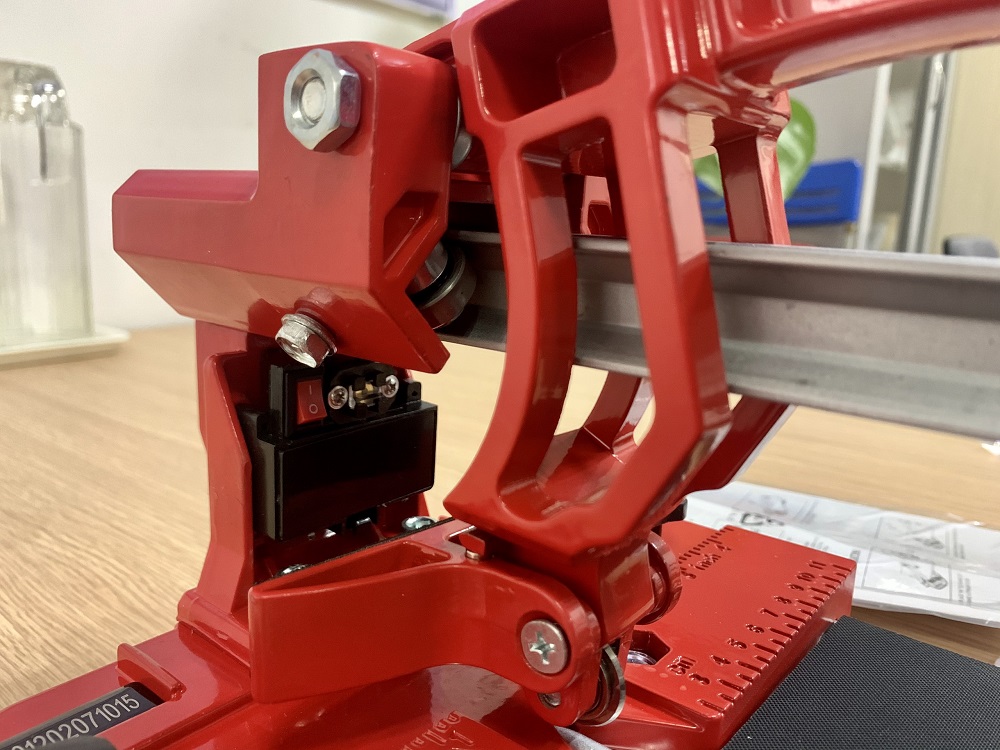 – Bàn cắt gạch được trang bị thêm thước đo giúp căn chỉnh theo kích thước mong muốn một cách dễ dàng.