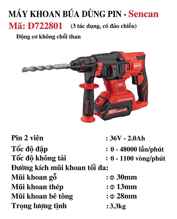 Máy Khoan Búa Dùng Pin Sencan D722801-36V