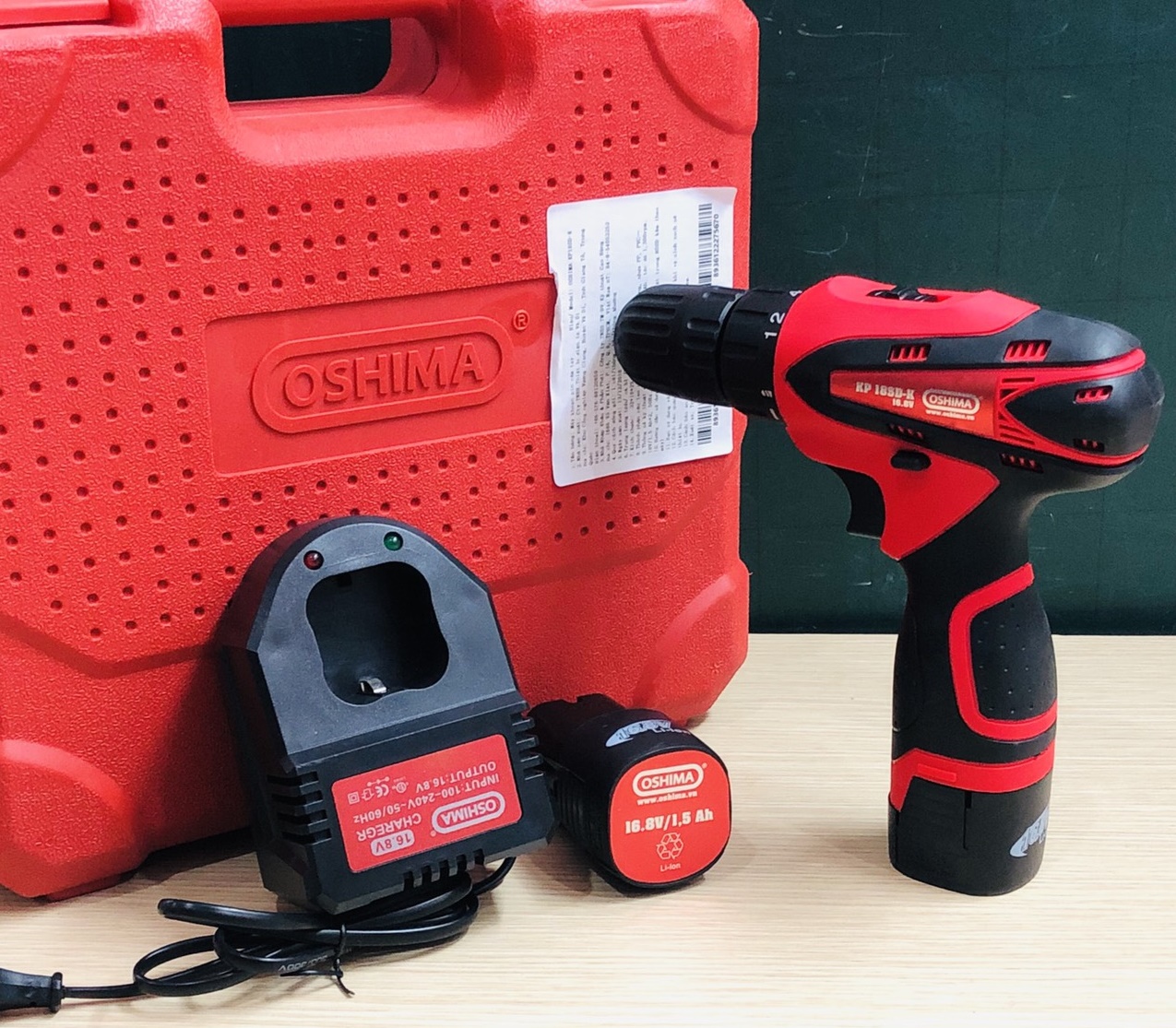 – Máy khoan Oshima sử dụng pin trụ 16.8V, thời gian sạc 2 giờ, sử dụng liên tục từ 30 – 45 phút.