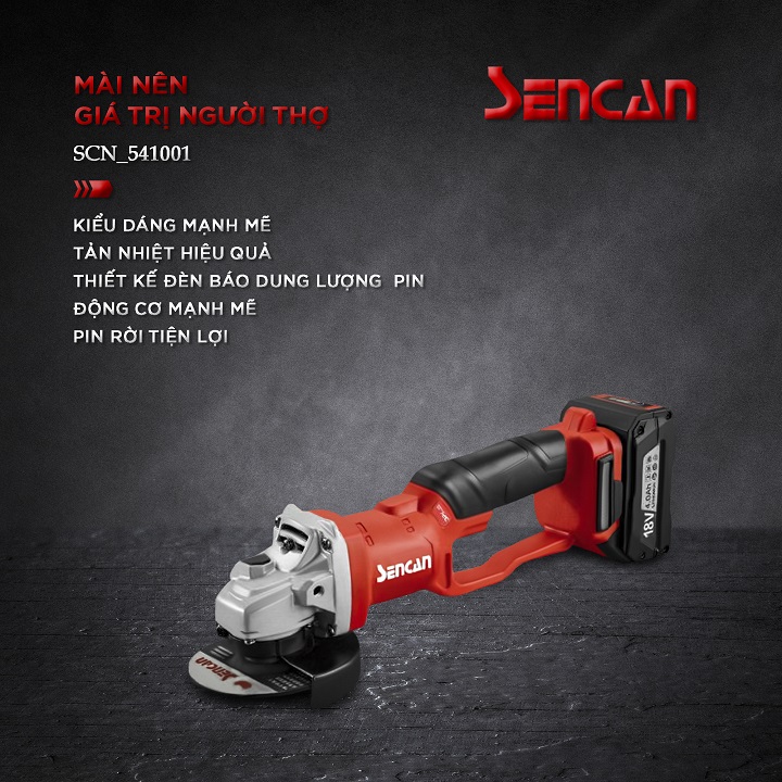 – Máy Mài Góc Dùng Pin Sencan D541001 18V là dòng máy mài được sản xuất trên quy trình công nghệ hiện đại và tiên tiến, đem lại cho máy có khả năng hoạt động mạnh mẽ cùng độ chính xác cao