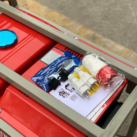 Trước khi sử dụng, khách lưu ý chọn chế độ điện đầu ra để sử dụng bằng cách gạt sang 1 pha (220V) hoặc 3 pha (380V), nếu để ở giữa chạy 1 lúc máy sẽ tự tắt.
