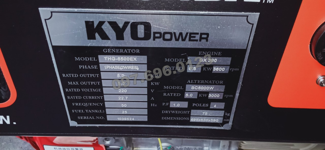 Máy Phát Điện Chạy Xăng 5KVA Kyo Power THG6500EX