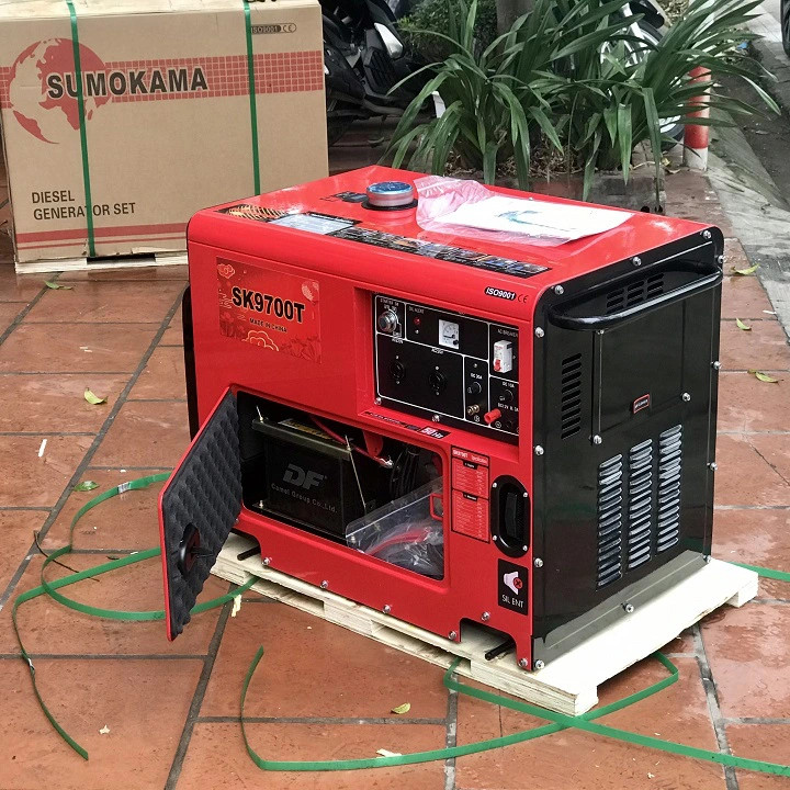 Máy Phát Điện Chạy Dầu 6Kw Sumokama SK9700T: là dòng máy phát điện với mức công suất vừa phải dành cho gia đình hoặc nhà xưởng, cửa hàng nhỏ, máy được thiết kế chắc chắn với độ chống ồn tiêu chuẩn, thân thiện với môi trường. Tổ máy được thiết kế với khung chịu lực chắc chắn, có bánh xe dễ dàng di chuyển, các chân được bố trí đệm cao su chống rung lắc trong quá trình vận hành
