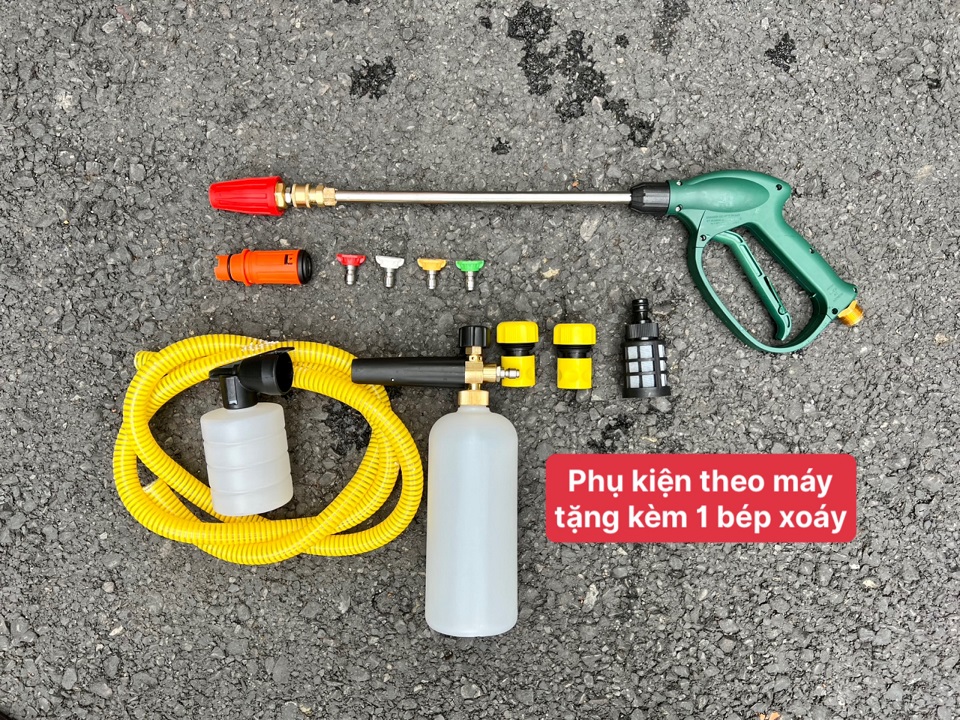 – Xịt rửa khoẻ, áp lực cao, máy chạy mô tơ từ không chổi than.