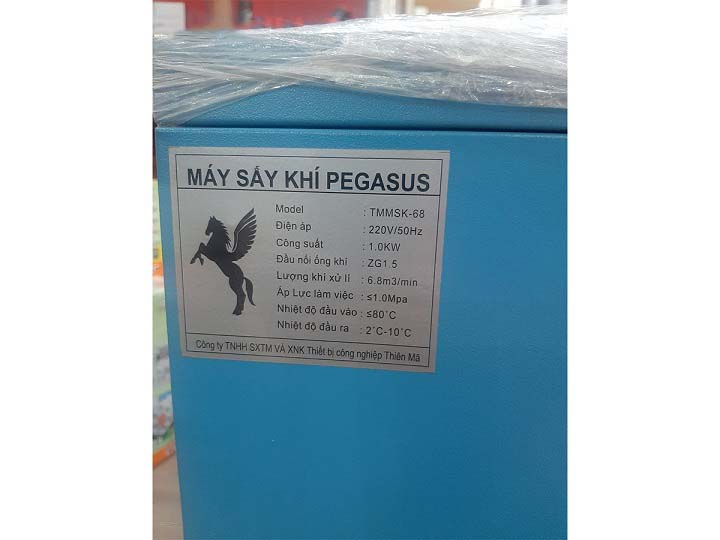 – Máy sấy khí Pegasus TMMSK-68 là một loại máy thực hiện nhiệm vụ làm khô và làm sạch khí nén. Máy hoạt động với nguồn điện áp 220V/ 50Hz; tổng công suất 1KW, áp lực làm việc ≤ 1.0 Mpa.