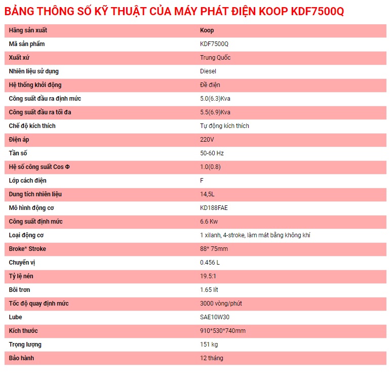 - Máy phát điện Koop KDF7500Q ghi điểm mạnh mẽ trong mắt người tiêu dùng nhờ những ưu thế về cơ chế vận hành cũng như công năng tuyệt vời của nó. Dưới đây là một số nhận xét chi tiết về những tính năng ưu việt đó của Koop KDF7500Q: