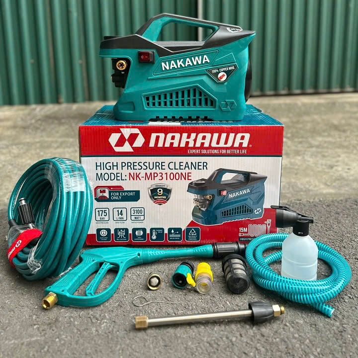 - Máy Rửa Xe 3100W Nakawa NK-MP3100NE: Máy sử dụng motor từ khỏe khoắn, tích hợp tính năng tự động ngắt khi nhả cò, vỏ motor được quấn 100% dây đồng cho độ chắc chắn và an toàn cao. Hiệu suất phun rửa lớn khi áp lực lên tới 175bar giúp đánh bay mọi vết bẩn.