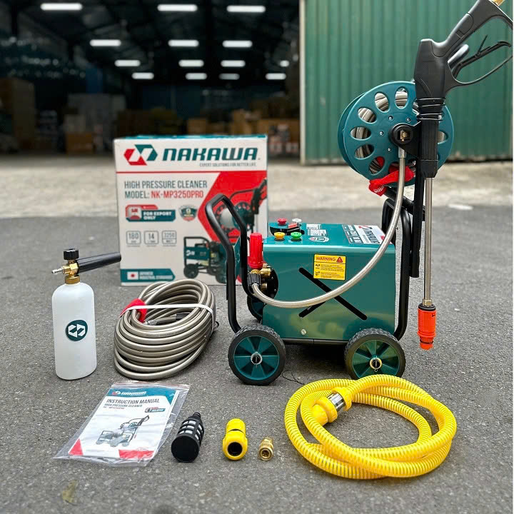 - Máy Rửa Xe 3250W Nakawa NK-MP3250Pro: Model máy xịt rửa xe Nakawa NK-MP3250Pro có công suất thuộc dạng lớn lên tới 3250W, áp lực cũng rất cao tận 180 bar. Máy được trang bị 4 bánh xe dễ dàng di chuyển kèm với rulo quấn dây tiện dụng. Do đó mà máy dễ đánh bay mọi vết bẩn, được ứng dụng vào nhiều hoạt động khác nhau.